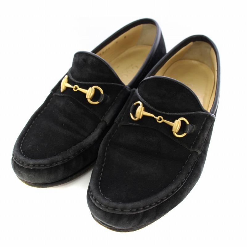 > グッチ GUCCI ローファー ホースビット スエード 5B 21.5cm 黒 100 0255/1 /TK ●D レディース