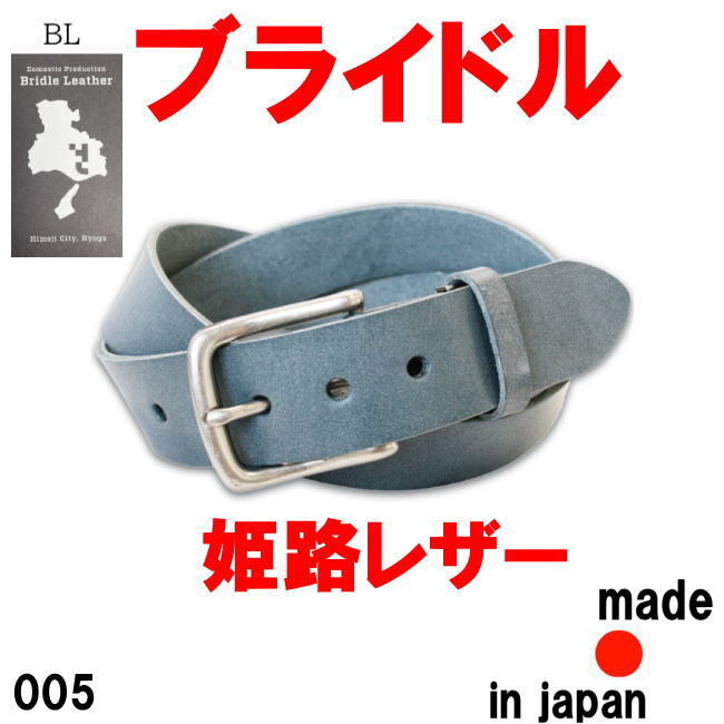 - ブルー ブライドルレザー 005 姫路レザー 40mm 日本製 本革 肉厚ベルト