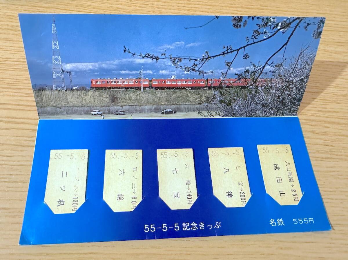 - 1/6 名鉄55-5-5記念きっぷ[硬券乗車券5枚]1組(名古屋鉄道/昭和55年5月5日/5500系/7000系/SR車/廃車/新川検車区/水没/平成12年9月東海豪雨)