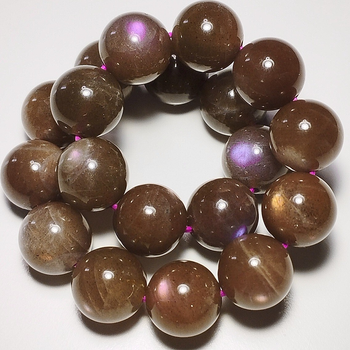 - ピンクラブラドライト ゴールデンラブラドライト ブレスレット10.5㎜ 16.5㎝ レインボーシラー ムーンストーン アンデシン