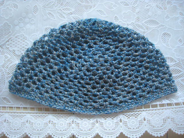 - 即決/ハンドメイド 手編み 伸縮性 通気よい 透かし編み メッシュ 綿麻 大きサイズ/ブルー/ニット帽子/ビーニー イスラム帽/アウトドア