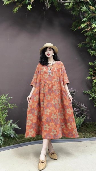 - mcc 0705 ワンピース ゆったり ふんわり アンティーク風 ロマンファッション 綿100% 七分袖 花柄27