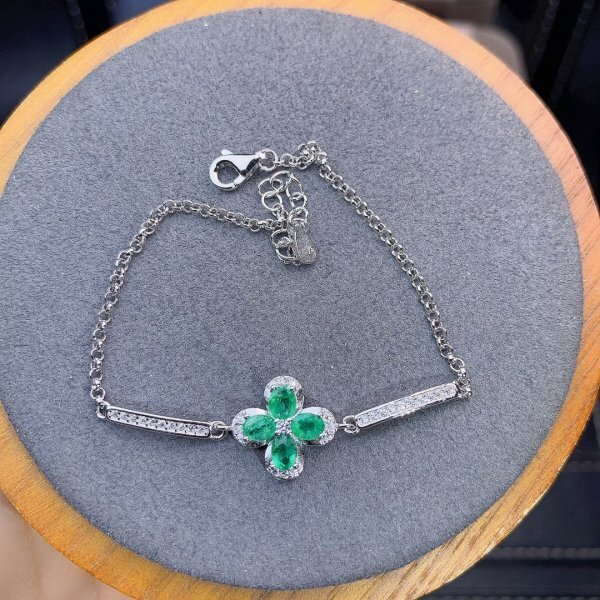 - 【証明書付き】女性のためのスターリングシルバーと天然エメラルドのブレスレット、3×4mm、最初の入札者様は開始価格で購入可能 su