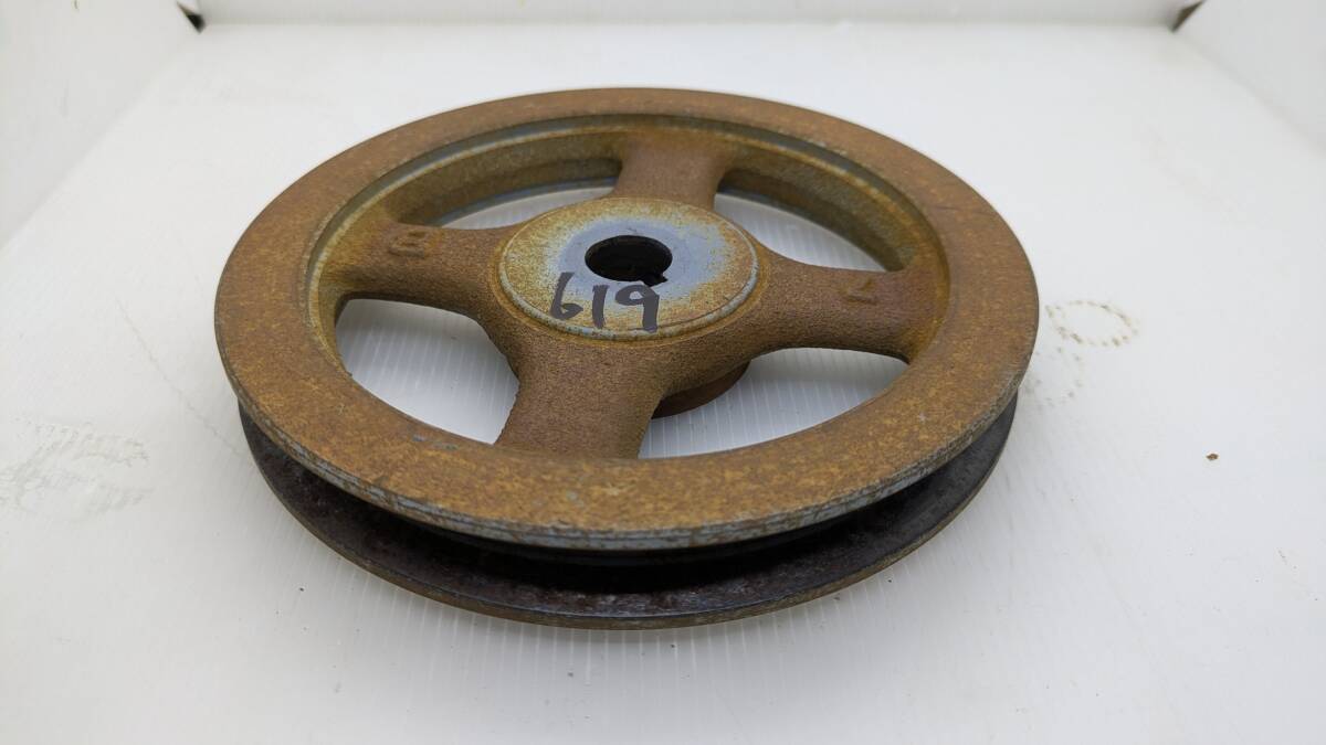 - No.619●1連プーリー●Bベルト●軸径Φ20mm●鍵幅5mm●外径Φ175mm●全体厚み30mm●発動機用●エンジン用●パーツ●部品