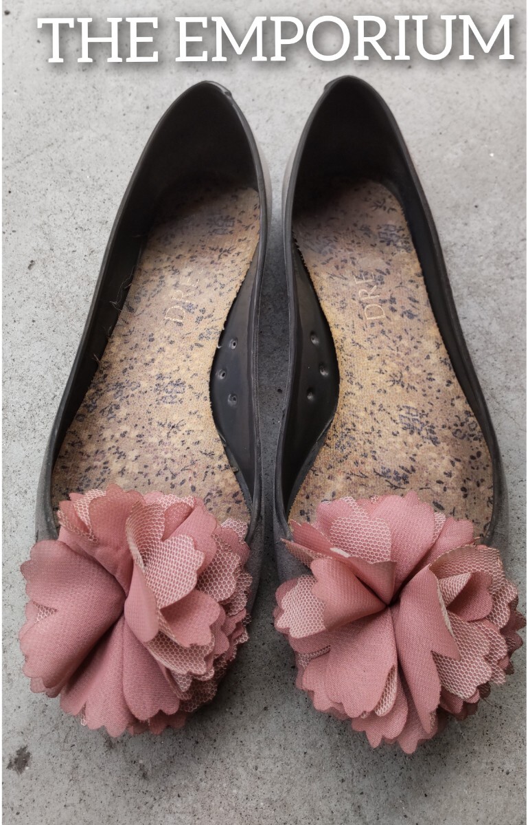 - コサージュレインシューズ ラバーシューズ フラットシューズ 24cm 38 くすみピンク グレー