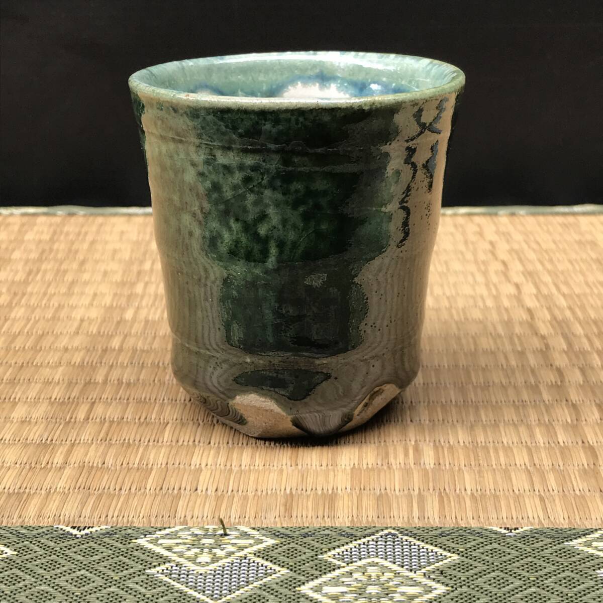 - 魯山人 青織部 米星岡窯銘印 ぐい呑み 小鉢 本物返品OK 205018−16