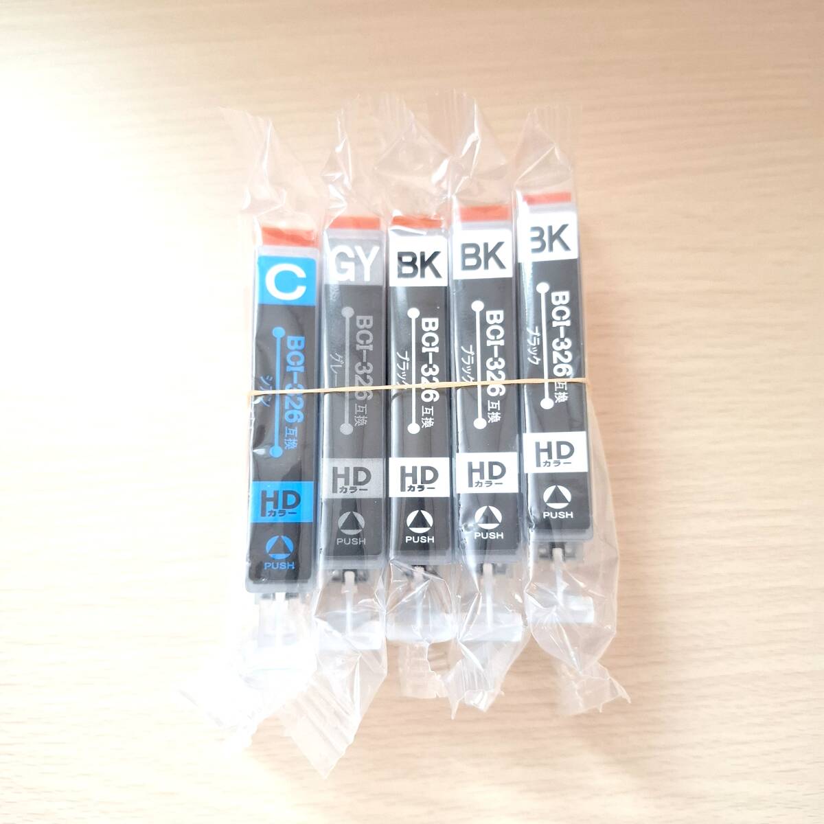 - 未使用品 キャノン BCI-326互換インク 合計5個セット(ブラック3個 グレー1個 シアン1個) 送料210円