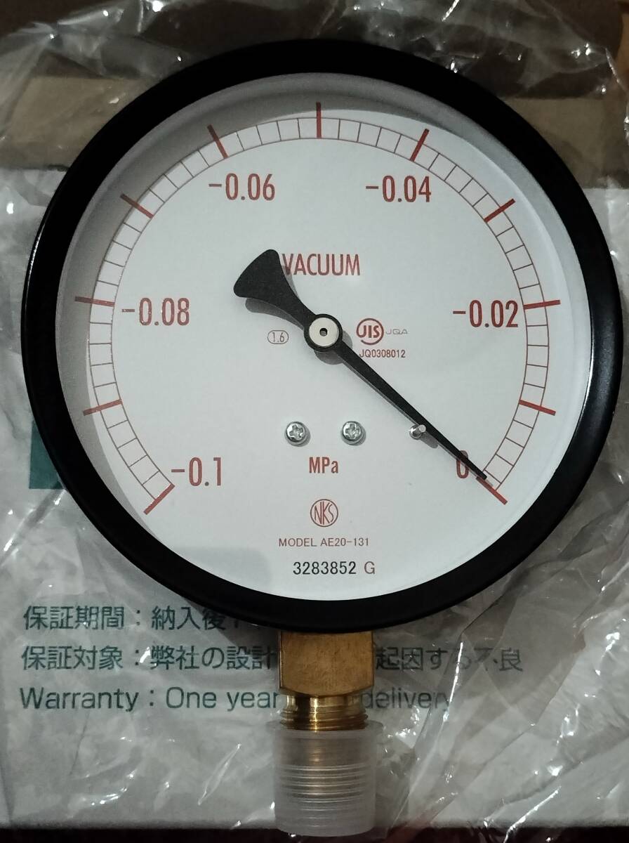 - 長野計器 普通形圧力計(A枠立形φ100・G3/8B・-0.1~0Mpa(真空計)) AE20-131-0.1MP