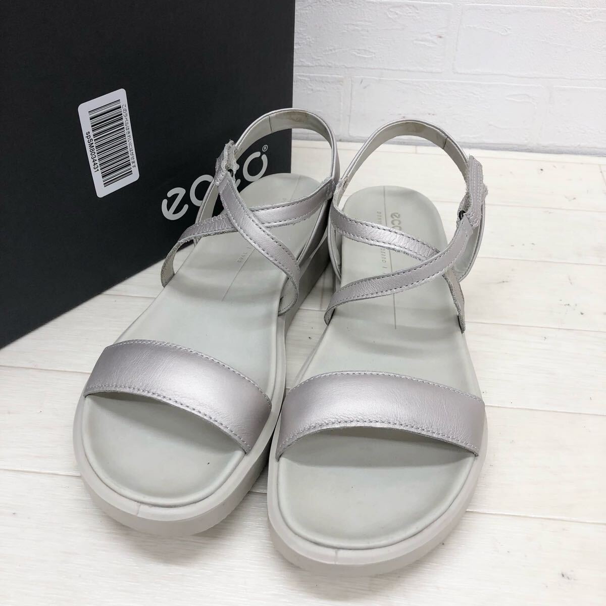 > M16〓 箱付き ecco エコー ストラップサンダル レディース サイズEU40 ライトグレー バックストラップ アンクルストラップ 靴 シューズ