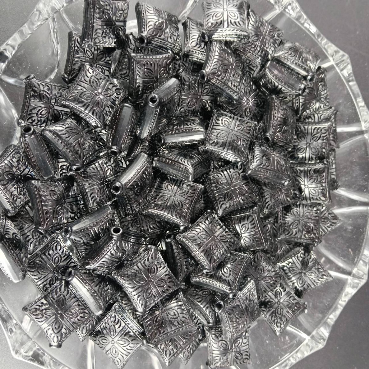> ☆未使用 大量 プラビーズ ダイヤ型 花柄 約229g 20mm ブラック ヴィンテージ ハンドメイド 手芸 アクセサリー ネックレス イヤリング S-44