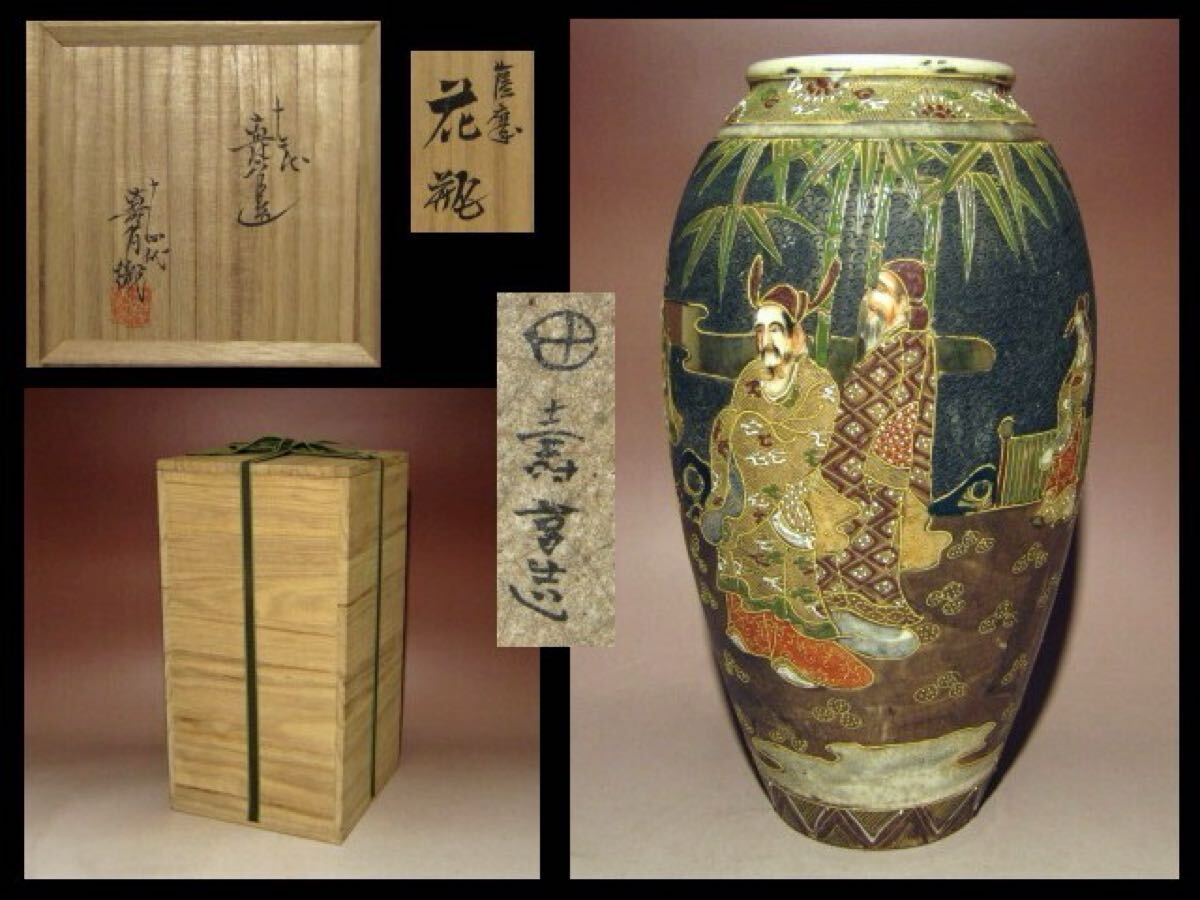 - 十二代沈壽官作 薩摩花瓶 花入★十四代沈壽官極めの名品★o529