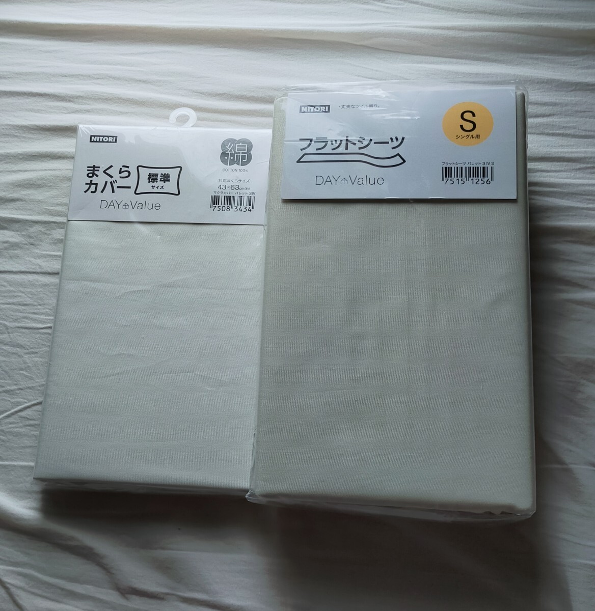 - ニトリ フラットシーツシングル&まくらカバーセット ホワイト系☆新品未使用未開封