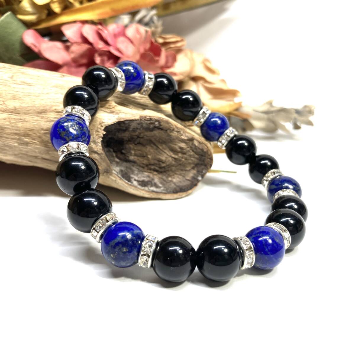 > モリオン&ラピスラズリ パワーストーン ブレスレット 天然石ブレス (シルバー) 10mm メンズ・レディース 厄除け 幸運 仕事運 学業運 ☆