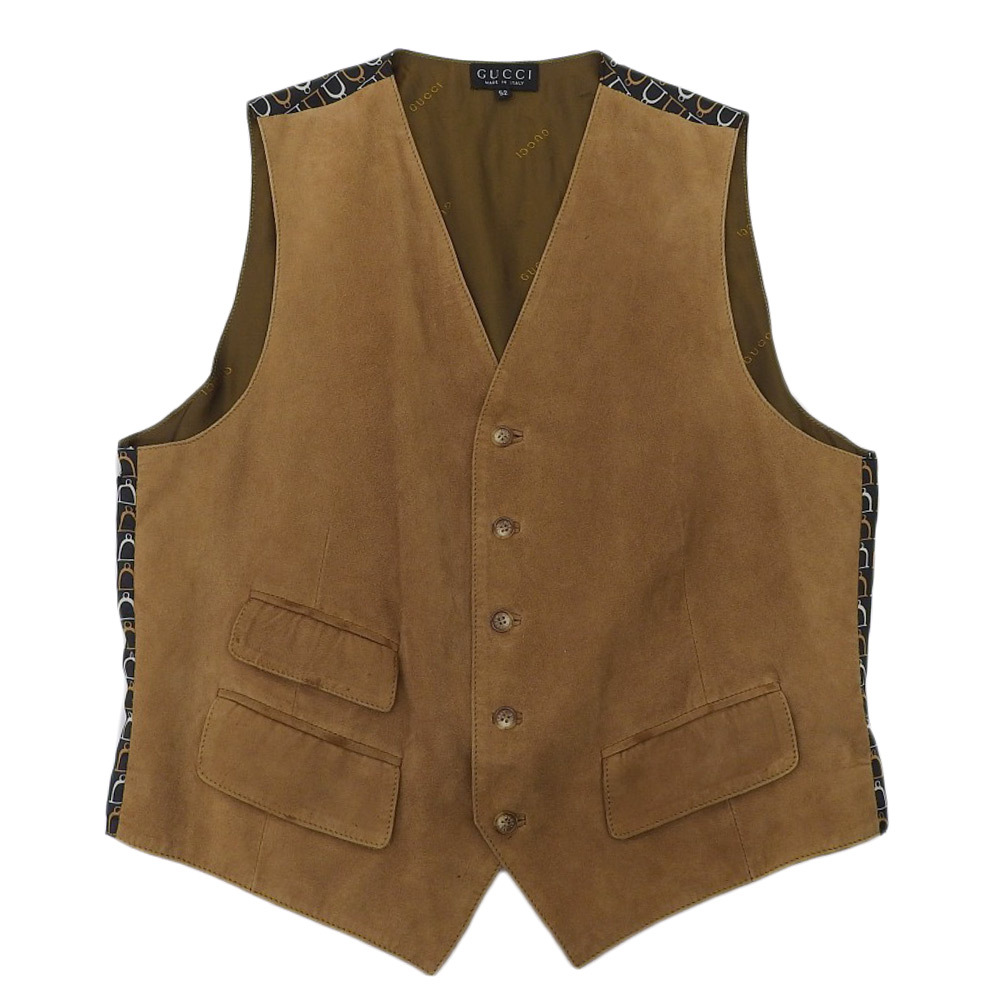 > GUCCI グッチ by TOM FORD トムフォード期 ジレ ベスト トップス メンズ レザー ブラウン × ブラック 52 ヴィンテージ