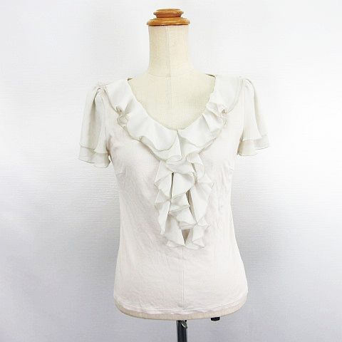 > 22オクトーブル 22 OCTOBRE カットソー 半袖 Vネック フリル 異素材 シフォン 2 ライトベージュ ※EKM レディース