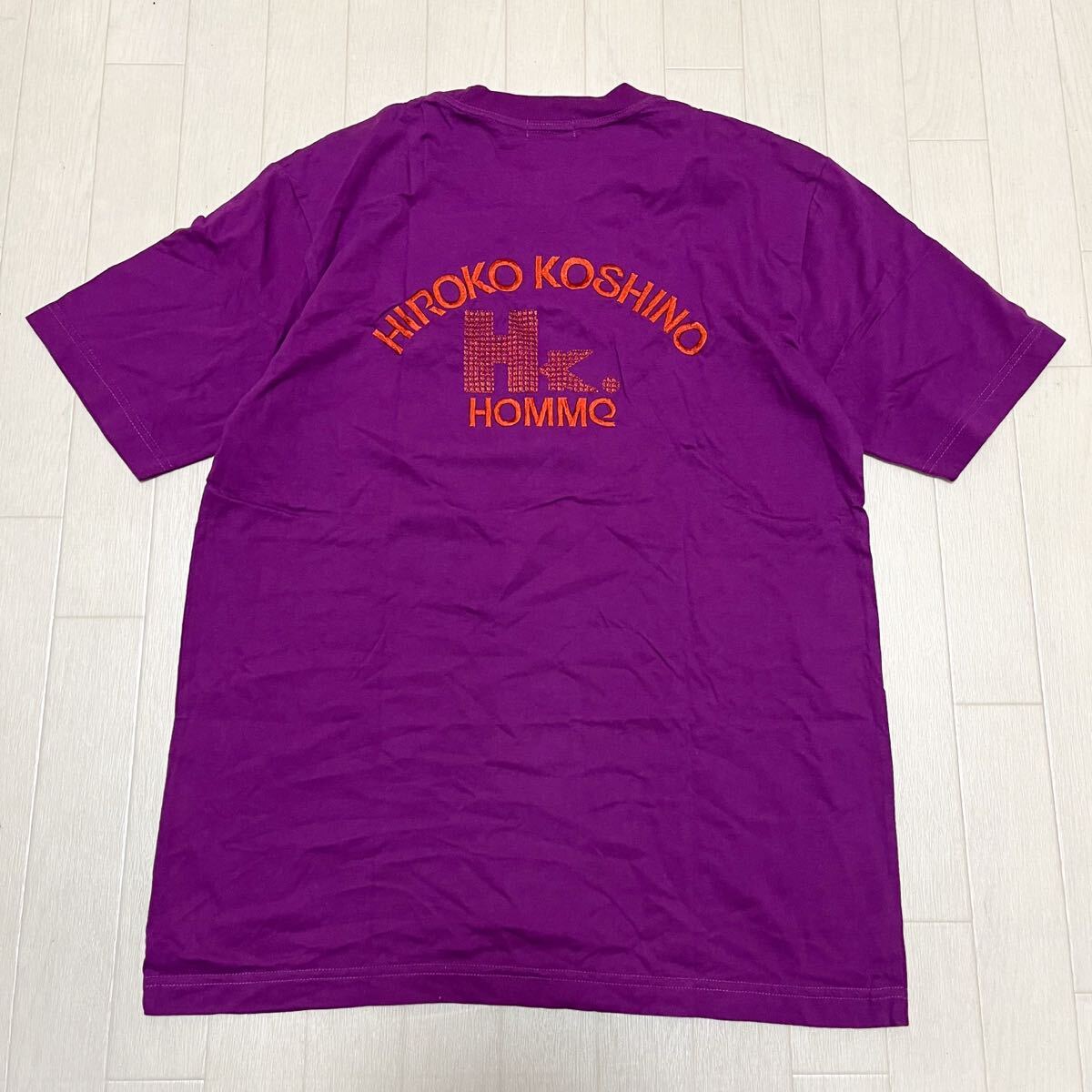 > 和742★ HIROKO KOSHINO homme ヒロココシノ オム 半袖 Tシャツ ロゴ刺繍 L パープル メンズ