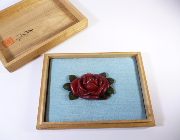- Ж 鎌倉彫り 薔薇細工 帯留め Ж 作家物 鎌倉彫