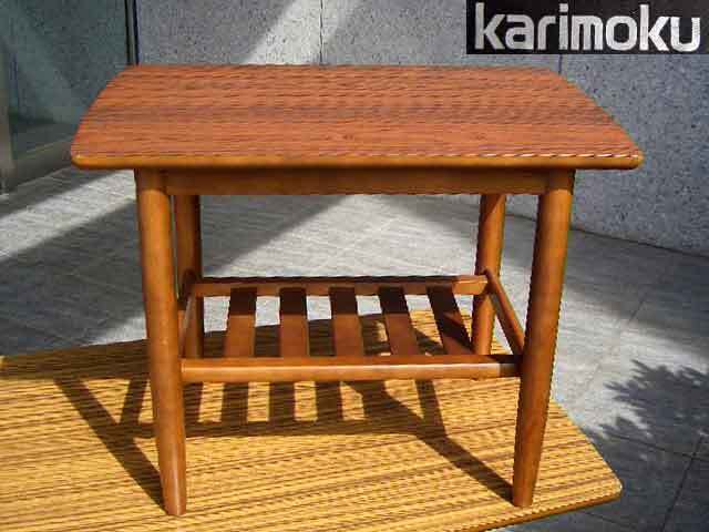 > ● karimoku カリモク 美しき縦縞 葡萄色 ローズ メラミン木目 素敵な小っちゃいコーヒーテーブル 昭和モダニズム シンプル レトロ 廃盤 美