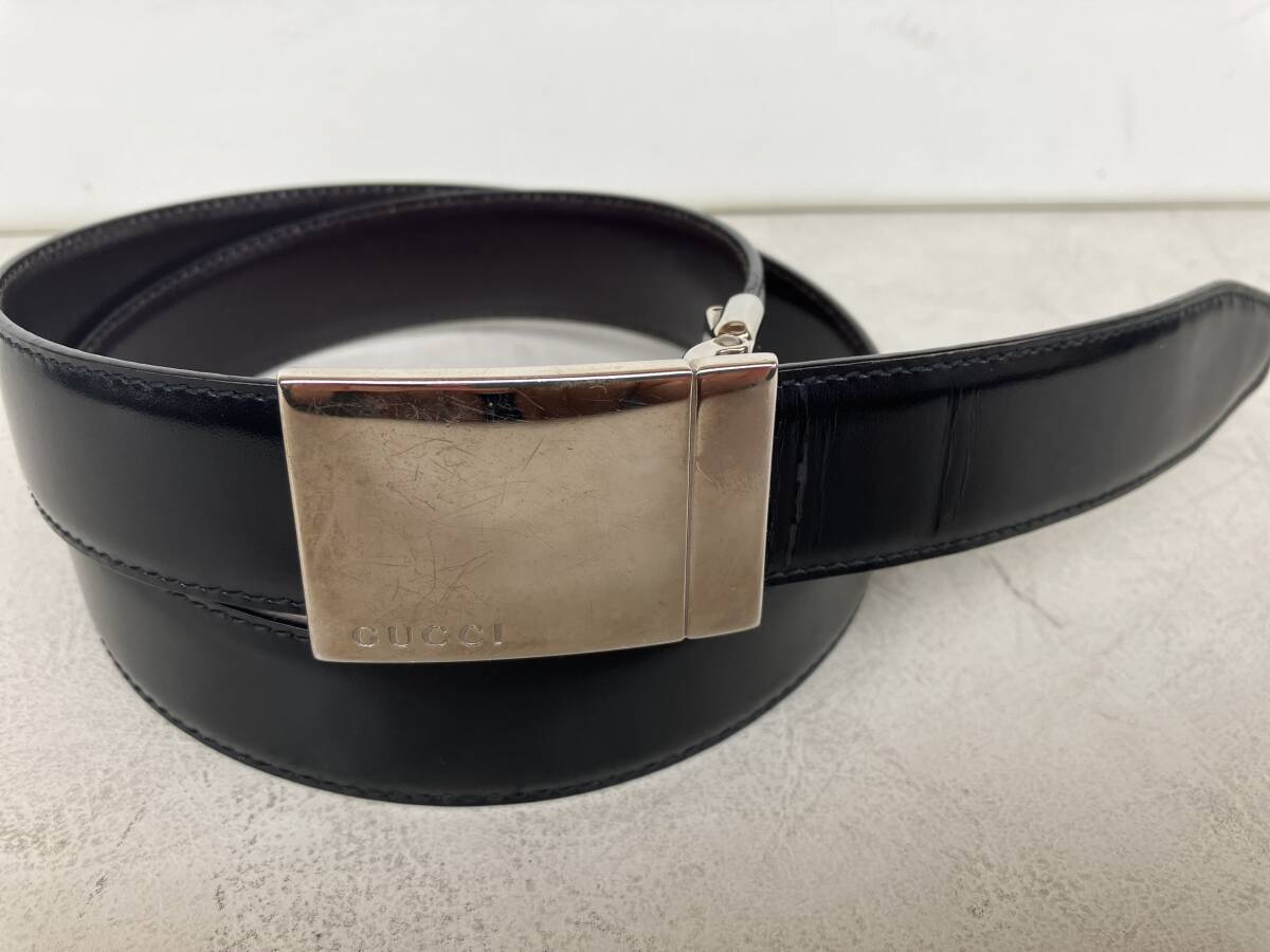 - 即決 GUCCI グッチ シンプルバックル 上質レザーベルト 黒 ブラック 最小内周84㎝ 最大内周89㎝