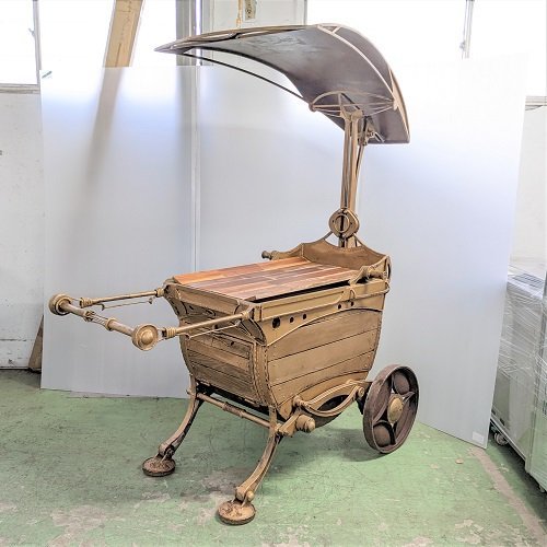 > ★ 移動式BBQコンロ 幅760×長さ1600×高さ1815mm 庭でバーベキュー 店舗前客寄せ アンティーク風 おしゃれ〈6973417〉