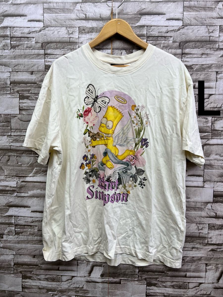 > L H&M エイチアンドエム オフホワイト バート・シンプソン シンプソン ルーズフィット 半袖Tシャツ 半袖 Tシャツ カットソー トップス