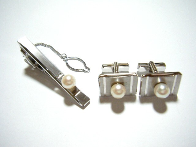 - ★SILVER 850 パール 7.2mm カフス タイピン セット 【FC6】