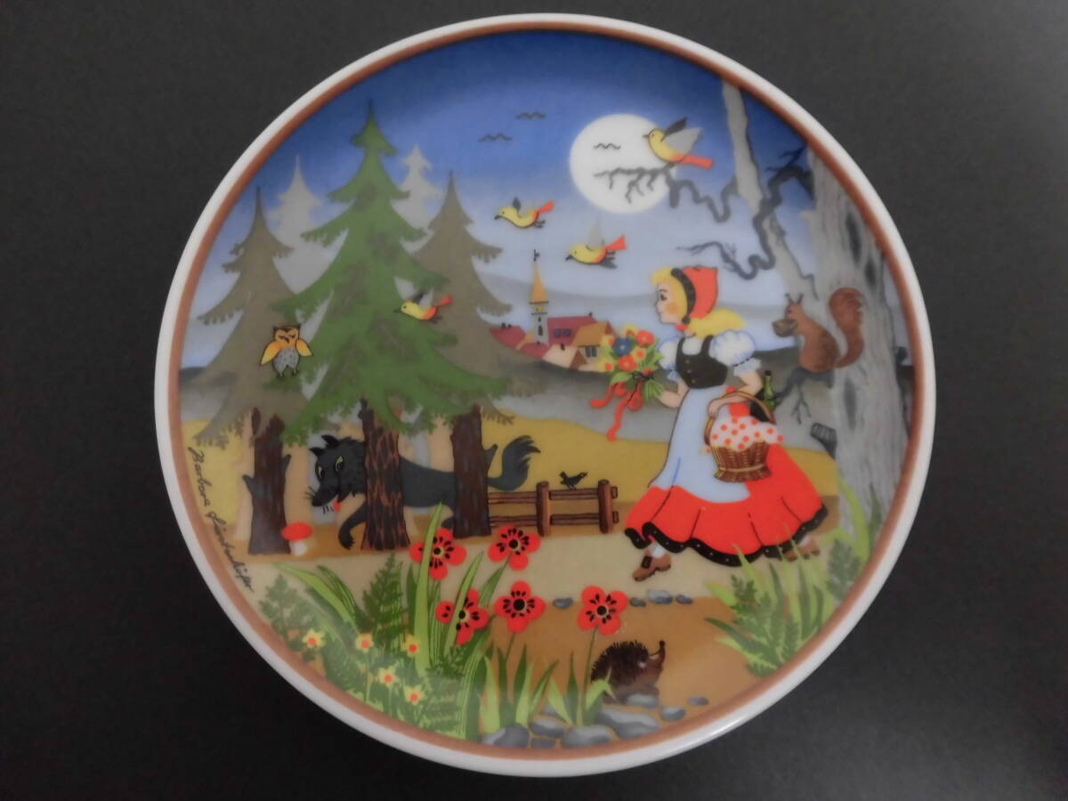 - 長期保存品★レトロ アンテーィク 陶器製 ミニ絵皿 ミニプレート 小皿★グリム童話 赤ずきん かわいい絵皿 ★1枚