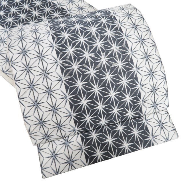 - 袋帯 未使用 正絹 カジュアル 仕立て上がり 六通 麻の葉模様 銀糸 白色 鼠系色 きもの北條 A1196-14