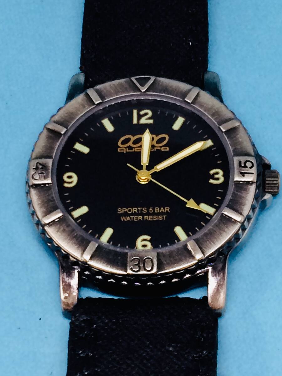 > (f42)日常使いに(*'▽')クアトロ・QUATTRO(電池交換済み)ダークシルバー・メンズ腕時計USED(送料全国一律185円)素敵な時計です。
