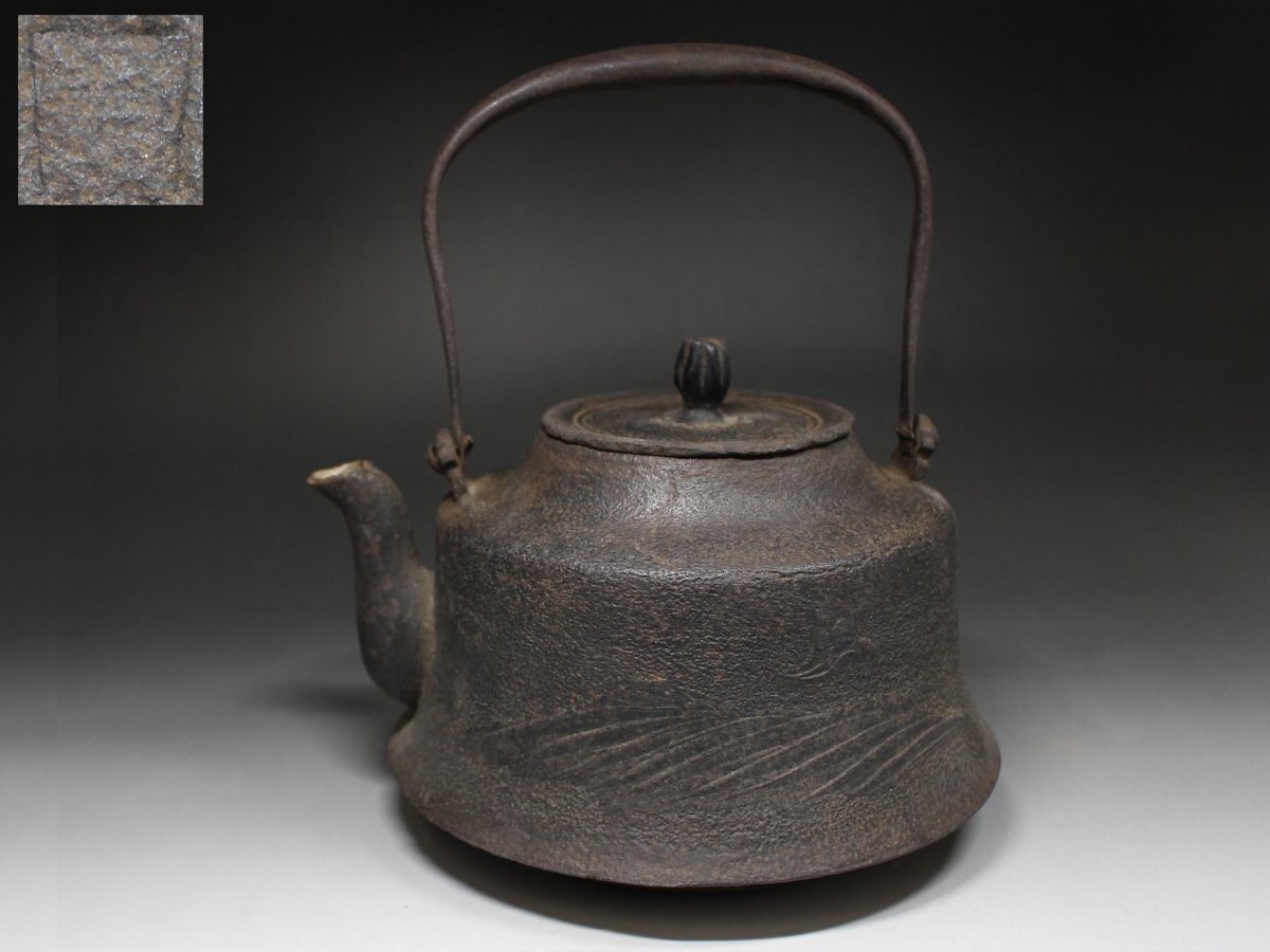 - ◆鉄瓶・岩肌地・鳥山水図・盛上げ彫・鐵瓶・湯沸・鉄壷・茶器・煎茶道具◆a6162h