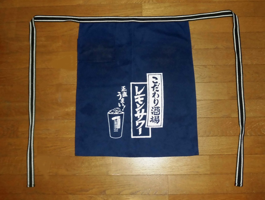 - こだわり酒場 レモンサワー 前掛け エプロン 業務用 販促用 非売品 藍色 濃紺 ポケット付 使用僅 ほぼ未使用 美品/正直うまい! 企業物