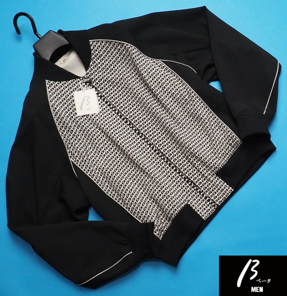 > 新品サンプル定価5.8万円 β ベータメン (コムサメン) 日本製 デシン生地 カメラフォトプリント ブルゾンL黒(05) 06BE03
