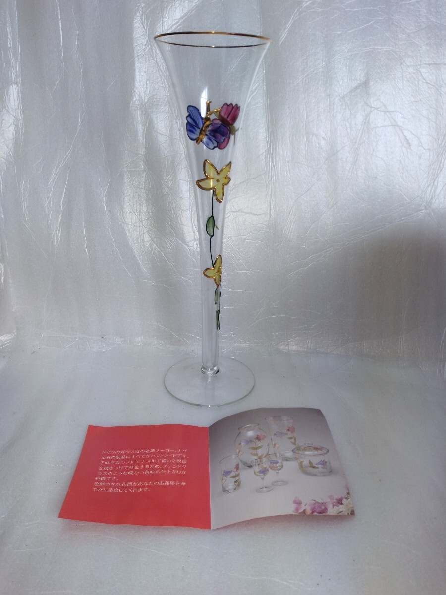 - K103 Nagel ドイツ製 アートグラス ハンドメイド フルートグラス シャンパン Glass 金彩 ナゲル社 アンティーク Stained glass