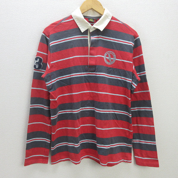 - H■エーグル/AIGLE ボーダー柄 長袖ポロシャツ ラガーシャツ【L】赤/MENS■7【中古】