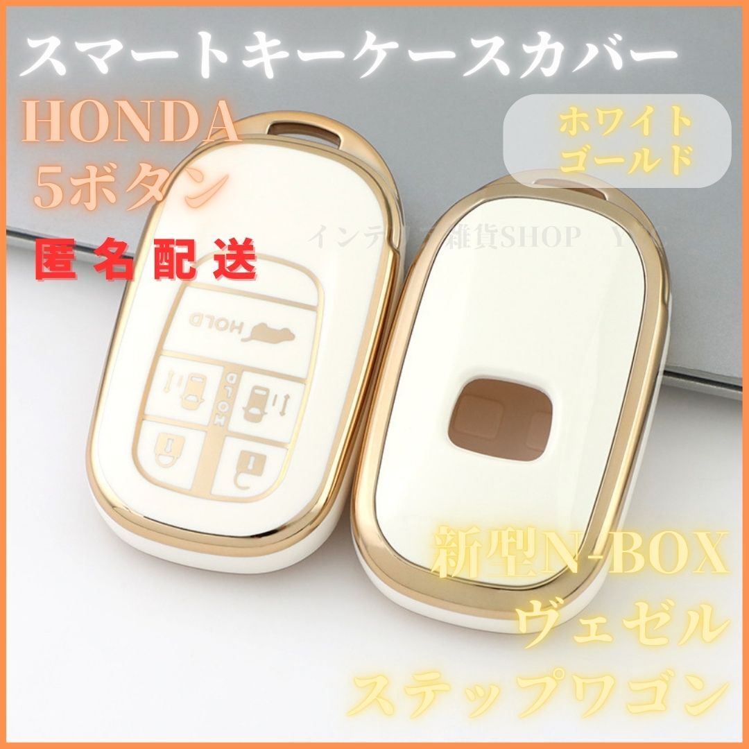 > キーケースキーカバー HONDA ホンダ 新型 ステップワゴン スパーダ N-BOX カスタム JF5 F6 スライドドア スマートキー5ボタン白金