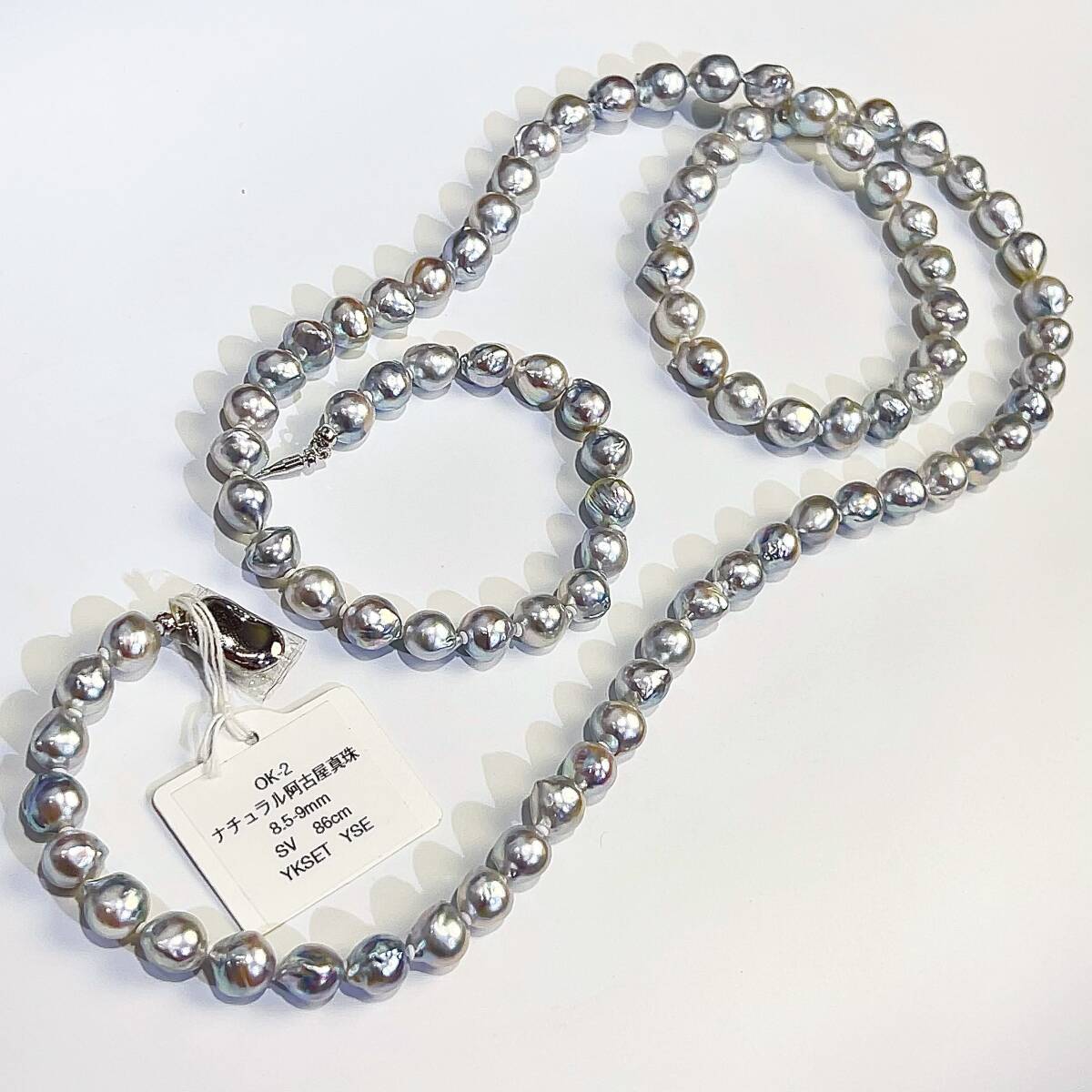 - SV AKOYA ナチュラル無調色 アコヤパール バロック ロング ネックレス ナチュラルグレイ 8.5-9mm 天然 本真珠 レディースアクセサリー 新品