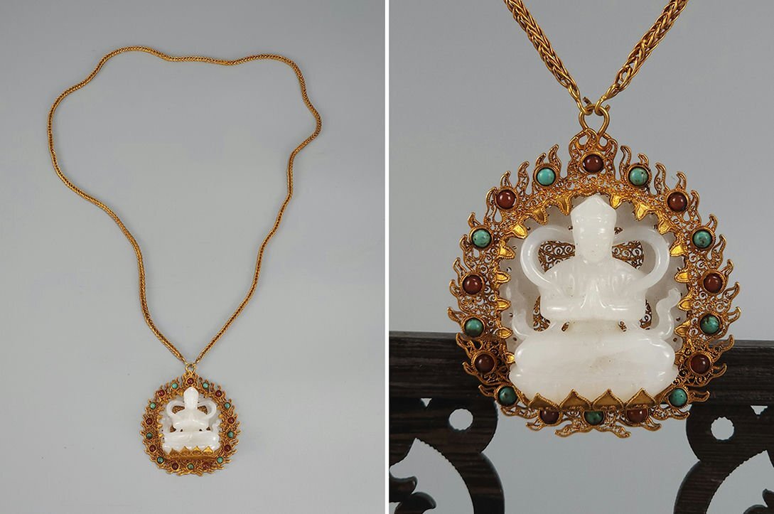 - ■観心・時代旧蔵■C7958清時代 純銀塗金象嵌玉仏 細密細工★古置物★古賞物★古擺件★蒐集家放出★唐物