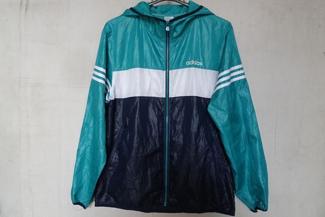 - adidas NEO/アディダス/ジャンパー/ナイロン系ポリエステル素材/前ジップ/白ライン/エメラルドグリーン/紺/ネイビー/Lサイズ(5/26R7)