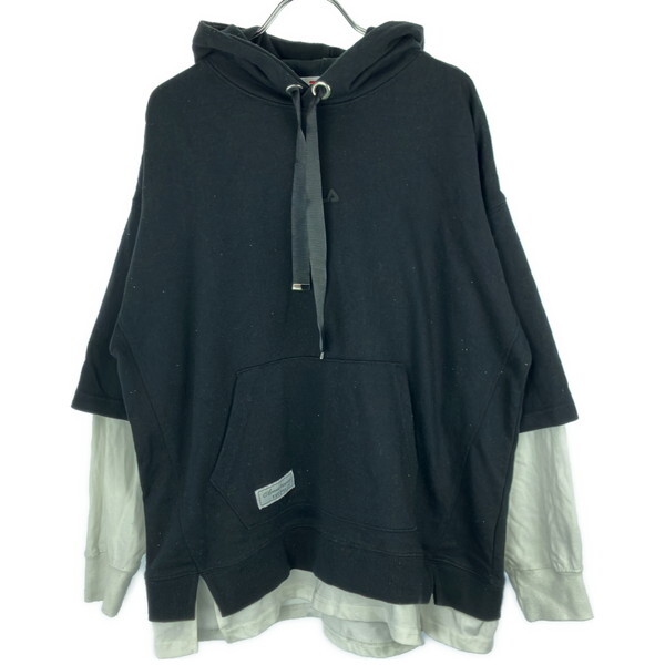 > 古着 レディースF FILA/フィラ フェイクレイヤードパーカー スポーツ カジュアル ブラック/ホワイト FL1992