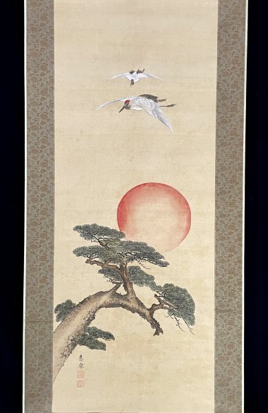 - CM2205[模写]円山応挙 圓山應擧「旭日松鶴」掛軸 絹本 花鳥図 鳥獣/江戸中期の画家 円山派の祖 石田幽汀に師事 京都の人 人が書いたもの