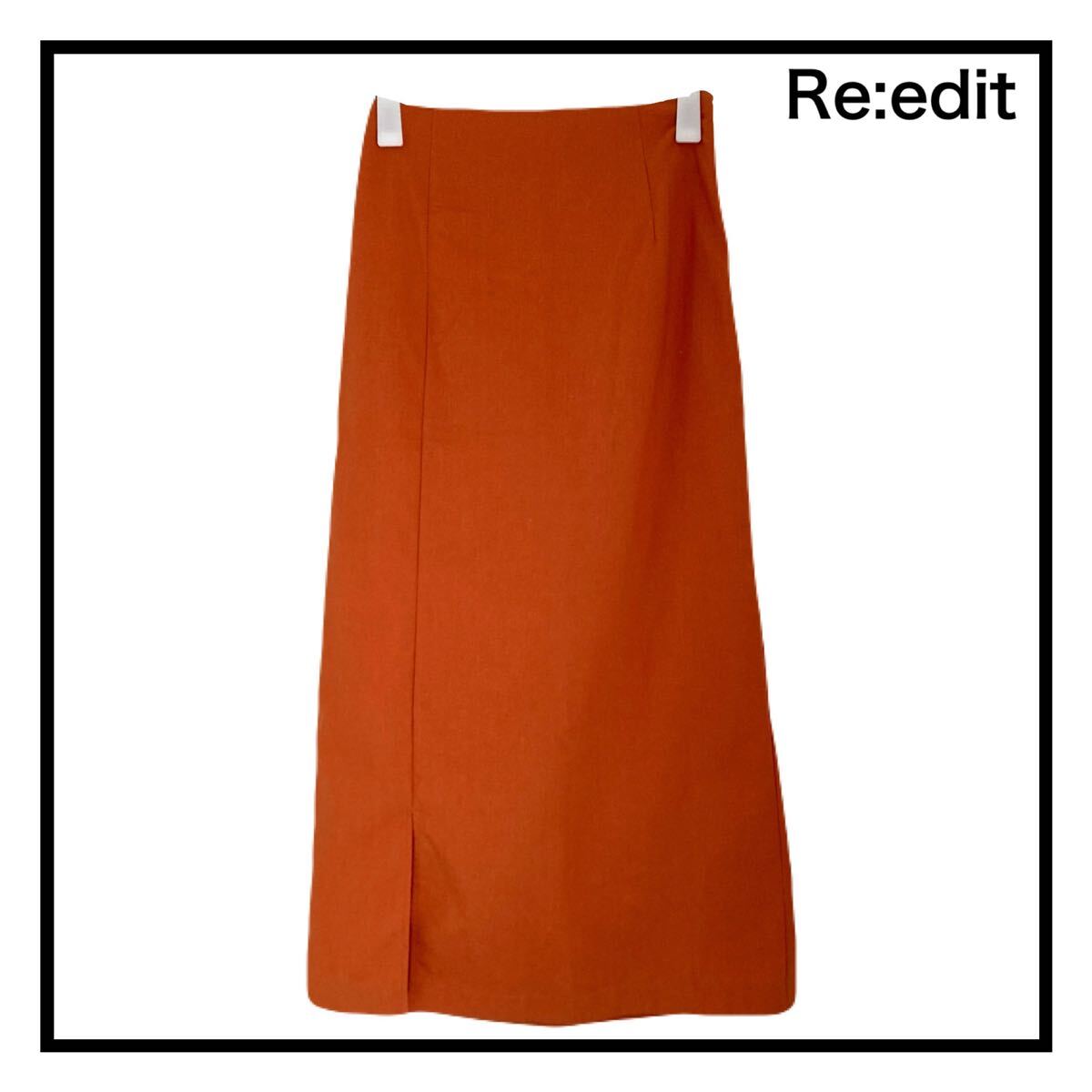 - リエディ リネン コットン ロングスカート オレンジ 無地 ウエストゴム M