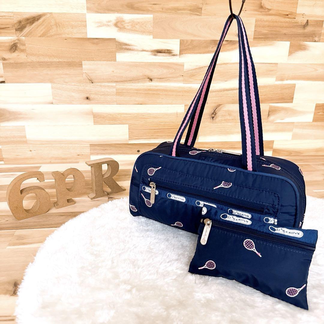 持ち運びに嬉しい軽量のナイロン素材で、毎日使いにも頼れる存在。ネイビーのベースに散りばめたラケットモチーフがユニークで、ピンクのライン入りハンドルがアクセントに。スポーティーなのにどこかキュートで、デニムやスウェットとの相性も抜群なLeSportsacのトートバッグです。