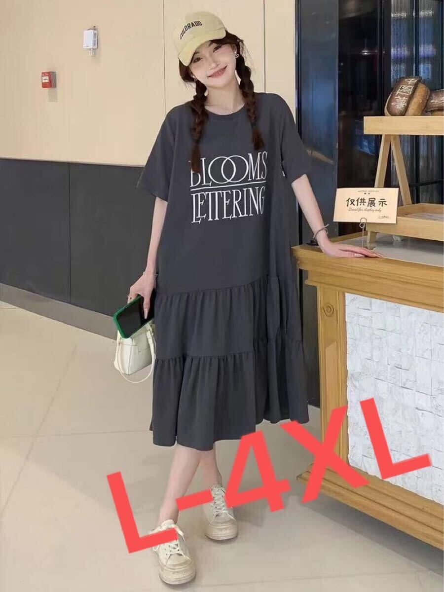 > シャツワンピース tシャツ ワンピース レディース ロング 英文字 tシャツワンピ ロングワンピース レディースワンピース LWGA034(3色L-4XL)
