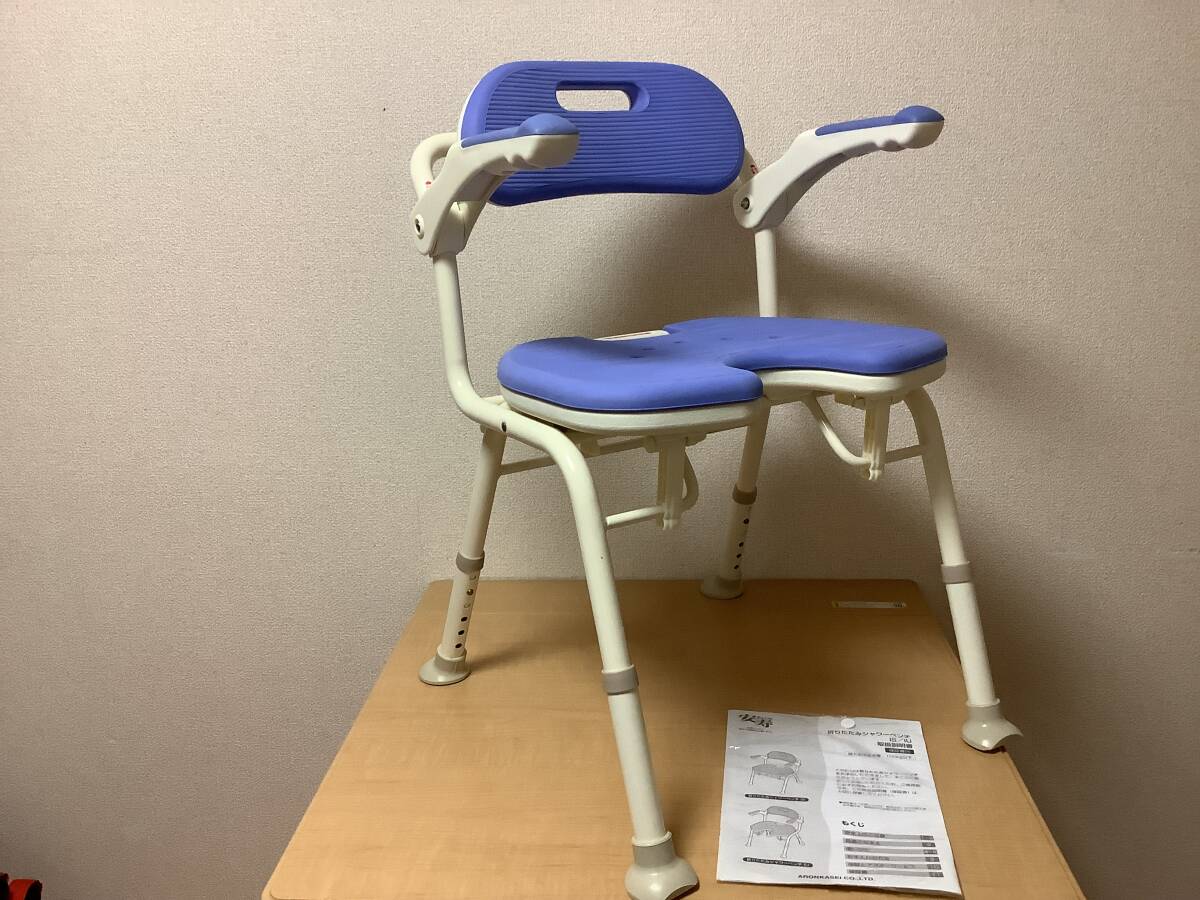 - 美品 安寿 アロン化成 折りたたみシャワーベンチIU ブルー/ホワイト 取説 耐重100kg 分解洗浄 除菌 シャワーチェアー 送料無料