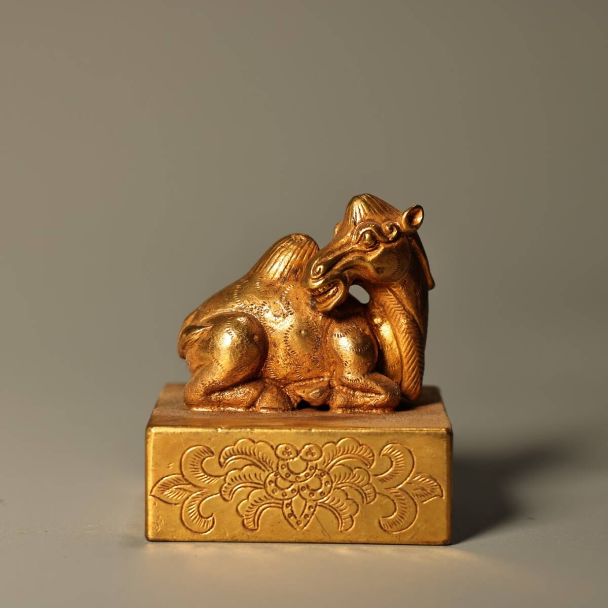 - 蔵友旧蔵出 銅製 塗金 花卉紋 駱駝印章 貴重品 置物 古賞物 中国古玩 中国古美術品