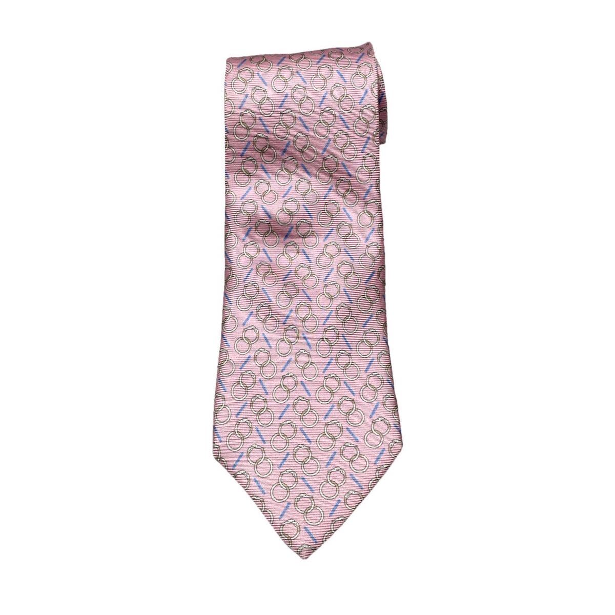 - MADE IN ITALY製 TRUSSARDI 総柄プリントシルクネクタイ ピンク トラサルディ イタリア製 ブランドネクタイ ネクタイ シルク100