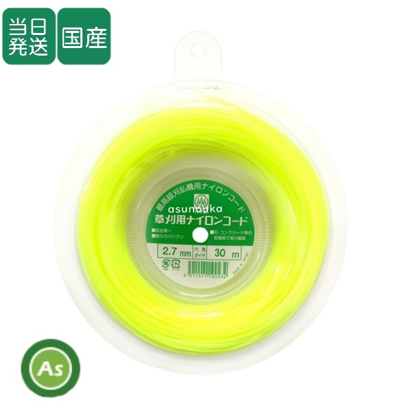 - 刈払機用ナイロンカッター 替えコード 30m 六角ダイヤ2.7mm 草刈用ナイロンコード