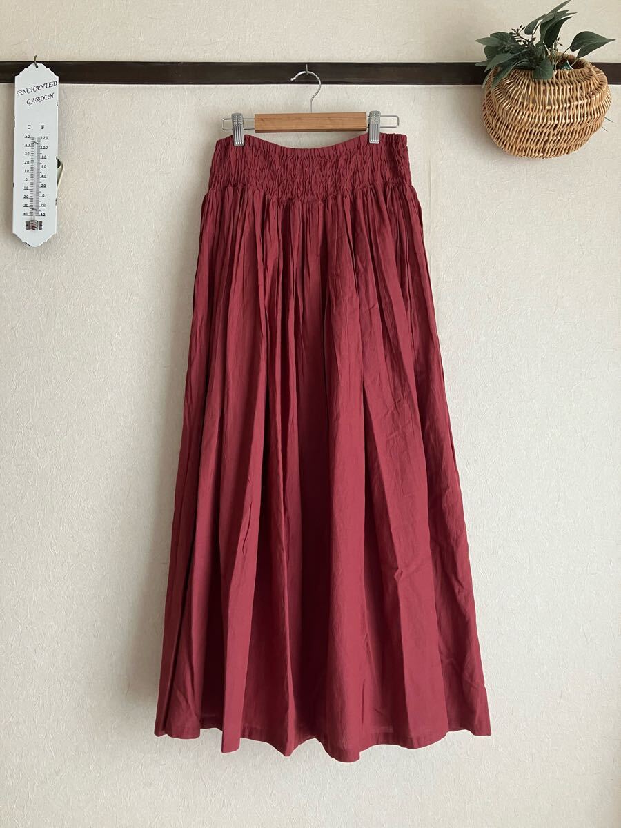 > 【AZUL by MOUSSY】アズール バイ マウジー ロングスカート サイズM マキシ丈 コットン100 総ゴム フレアスカート レッド系 匿名発送送料込