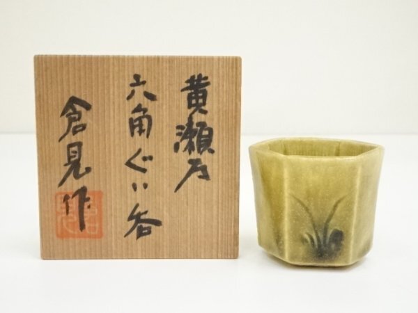 - ys7371246; 日の出窯 倉見日出克造 黄瀬戸六角ぐい呑(共箱)【道】