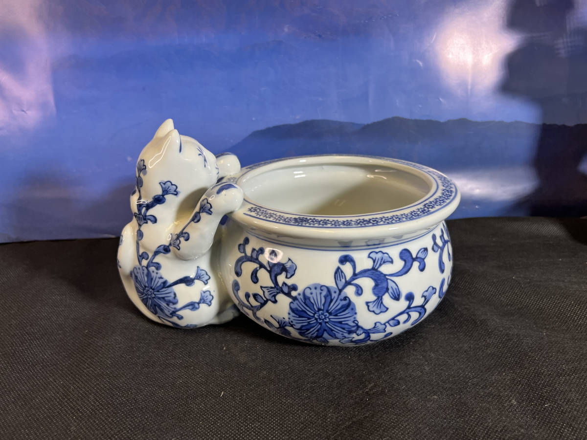 - 陶器製 【猫覗き魚缶】 水槽 ペット用品 金魚鉢 メダカ ブーム 観賞用 植木鉢カバー 水鉢 人気 染付 睡蓮鉢 陶磁器
